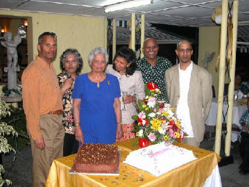 is at a wedding, summer of 2001, Jennifer not there. On the right is Molly's 80th birthday party in March